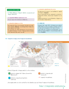 UN GRAN IMPERI ISLÀMIC • A l'Edat Mitjana, l'imperi islàmic va passar per etapes diferents: 1. ELS QUATRE PRIMERS CALIFES (632-661) Es van elegir entre familiars de Mahoma. 2. LA DINASTIA OMEIA (661-750) Procedent de Síria, va aconseguir el poder, va instal- lar la capital a Damasc i va protagonitzar l'etapa de més expansió de l'islam. Per governar, els califes delegaven el seu poder en un primer ministre, el visir, i cada província restava sota l'autoritat d'un emir o un valí. 34. Completa el mapa sobre l'expansió musulmana: REGNE 3. LA DINASTIA ABBÀSSIDA (750-1258) Va derrocar els omeies i va traslladar la capital de l'imperi a Bagdad. Va ser el període de més esplendor econòmica i cultural de l'islam, encara que l'expansió es va frenar. Algunes províncies, com al-Àndalus o Egipte, es van declarar independents. 4. EL SEGLE XIII A partir del segle XIII, els turcs, procedents d'Àsia Menor, van aconseguir el poder al món i va suposar la inauguració de l'imperi Otomà. L'any 1453 van conquerir Constantinoble, la ca- pital de l'imperi Bizantí i la van batejar amb el nom d'Istanbul. L'expansió de l'imperi islàmic Mar Talas (751) d'Aral S C R U C T I T M a N r a r N e g C r À I a M s p P L i E R I T B I Z A M a N r A T Í M e e À d i t e r r a ni M E C O M l'islam a la mort de Mahoma (632) 1 A R À B I A conquestes dels primers califes (632-661) conquestes dels omeies (661-750) conquestes dels abbàssides REGNE DE NÚBIA Poitiers (732) 3 AL-ÀNDALUS Còrdova Fes FRANC REGNE LONGOBARD Constantinoble (718) Xipre (654) 3 Damasc Jerusalem Bagdad PÈRSIA 2 a r R o i g – Pinta la llegenda i el mapa amb els colors indicats: territori originari de l'islam a la mort de Mahoma (1) territori conquerit pels primers califes (2) territori conquerit pels omeies (3) expansió musulmana Kairouan expansió musulmana fre de l'expansió musulmana capital omeia capital abbàssida 3 OCEÀ ÍNDIC Palerm (831) 3 el Caire 2 EGIPTE © EDITORIALVICENSVIVES – Assenyala amb un cercle vermell les tres batalles que van frenar l'expansió musulmana. Tema1.L'empremtaandalusina 19 1 Medina la Meca