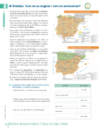 8 La conquesta de la península Ibèrica El califat de Còrdova al segle X Període Cronologia .............................................. 711-756 emirat independent ............................ .............................................. 929-1031 regnes de ................................ segle XI almohades ............................ .............................................. 1238-1492 Al-Àndalus. Com es va originar i com va evolucionar? • A principi del segle VIII es va produir la conques· ta de la península Ibèrica per part dels musul- mans. La seva presència es va perllongar més de set segles. • Els musulmans van travessar l'estret de Gibraltar amb una minoria àrab militar dirigent i un exèrcit de tropes amazigues del nord d'Àfrica, encapça- lades pels cabdills Tariq i Muza. • Van ocupar tota la Península, excepte el nord i els Pirineus, i van formar un emirat que depenia políticament i religiosament del califat omeia de Damasc (711-756). • Quan els abbàssides van destronar els califes, el darrer membre omeia, Abd al·Rahman I, es va re- fugiar a al-Àndalus i es va independitzar de Bag- dad. L'emirat independent va durar fins al 929. • L'època més brillant d'al-Àndalus es va produir entre 929 i 1031, durant el califat de Còrdova. Abd al-Rahman III es va convertir en califa, màxi- ma autoritat política i religiosa. • Durant el segle XI, els califes no van garantir la unitat del territori. Aquest es va fragmentar en taifes o petits regnes independents, assetjats per la pressió dels regnes cristians que procedien del nord. • Tot i l'ajuda dels almoràvits i els almohades du- rant els segles XII i XIII (pobles amazics del nord d'Àfrica), la unitat d'al-Àndalus no es va restablir. • El territori va quedar reduït al sud-est de la Penín- sula, al regne nassarita de Granada (1238-1492). 35. Completa la taula següent sobre l'evolució política d'al-Àndalus i contesta les preguntes: – Quins territoris es resistiren a la conquesta? ...................................................................................... – Durant quina etapa al-Àndalus va ser un territori unificat? Quan va tenir el poder més fragmentat? ...................................................................................... – Qui eres els almoràvits? I els almohades? ...................................................................................... ...................................................................................... Co Gu a G te oï ua ïm ad o L mb da br Se a ija S la al (7 ) ( ) )M a ev le et 71 or Se ra Gu vi 11 Ta a G q) T fa r eg il ll g ga go (7 oy 71 yu 13 ( ) i (7 ue 71 1 el ) ) Ta Co a e r C ga C d (7 ) (7 ) ( ( e G a e e 1) ar Ce a ri if ov 72 7 7 7 7 7 7 7 7 7 7 br va 22 ( 2) 2 2 2 ad 2) 2 2 2 Mà ra al ) ) ) ) ) do ó aP e s àl lt ta on A ia el s la ag ar r ( ng (Y ra Ya an ab na ba ad al da R R a P s a P rs o o o n n n Po 73 c oi o 32 it i i t ti ie i er a R s Ro ce R R R R R on nc es sv va alls L A eó Lu ug go A Ll le m ma ai am e mp pl e ús e e e l P Pe er rt tú As Pa a na st to lo on (71 1 Ba 4 4) Sa go sa a ( ar ra S (714) ss (7 g B a ag os B na ar rc ce el lo on 71 18 8) S la a ) 3) 3 T To ole ( o ed do al la aj ja ar ra a ar rr ra ag go on na ) a G T a C ( 3) ua ad da M ar Mè èr ri id da a M Me (7 71 12 2) ) Ma ed di it te er rr ra an ni Éci a É C rd resistència cristiana escassa presència musulmana resistència visigòtica batalla campanyes del 711 al 714 campanyes del 716 al 721 C aO ol Cò C va òr do ov Or a la ri io (7 ) ( 2) ( ( ( 71 7 Gr 12 Gi ga ) ib l T Ta ar ri iq C ta C a eu ut u t t a Santiago de Compostel·la Mar Cantàb bric Lleó Burgos Simancas Pamplona Saragossa Albarrasí Tortosa Barcelona Coïmbra Badajoz CALIFAT DE CÒRDOVA Còrdova límit cristianomusulmà campanyes d'Abd al-Rahman III campanyes d'Almansor 20 Analitzar processos històrics | Situar en l'espai i temps I T N À L T A À E C O G E R N E S C C C R I S T I A N S I T N À L T i n A a r r À e t i E d e M C r a M O © EDITORIALVICENSVIVES DESENVOLUPEM