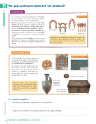11 Tipus d'arcs de ferradura lobulat d'estrep entrecreuat Tipus de decoració Per què continuem admirant l'art andalusí? L'ARQUITECTURA La construcció més representativa és la mesqui· ta, però també es van aixecar alcassabes, palaus, socs, banys públics i escoles (madrasses). Utilitzaven materials de construcció senzills (maó i fusta). Els murs exteriors amb prou feines es decoraven, però l'interior s'omplia amb una de- coració de marbres, rajoles, guixeries i fustes. Els edificis es cobrien amb voltes i cúpules pro- fusament decorades. També es feien servir pilars i columnes com a suport i una gran quantitat d'arcs. Molts palaus presenten jardins bonics en què la vegetació i l'aigua es combinen per crear un ambient de serenitat, integrant arquitectura i natura. LES ARTS DECORATIVES L'Alcorà prohibia les imatges, per això es van desenvolupar poc la pintura i l'escultura, en què predominaven els motius abstractes i geomètrics. Els artistes van cultivar diferents arts decoratives, entre les quals destaquen els objectes de metall, cristall i marfil i, sobretot, la ceràmica i el mosaic, de- corats amb una enorme varietat de motius, formes i colors. Pintura, mosaic i estuc es van utilit- zar per recobrir les superfícies dels murs. En ornamentació es feien servir motius geomètrics, vegetals i arabescos. L'arquitectura andalusina seguia els models de l'art islàmic, però va adoptar elements propis, com l'arc de ferradura emmarcat per un arrabà, el lobu- lat i l'entrecreuat. arabesca llaceries cal·ligràfica Braçalet d'or, segle XIV. 26 Valorar el patrimoni col·lectiu Gerro de les gaseles, de l'Alhambra de Granada. Arqueta de fusta i nacre, segle XIV. 46. Contesta les preguntes: – Per què predominava l'arquitectura en l'art andalusí? ..................................................................................................................................................................................... – Quins eren els edificis més representatius? Posa'n algun exemple: ..................................................................................................................................................................................... © EDITORIALVICENSVIVES DESENVOLUPEM